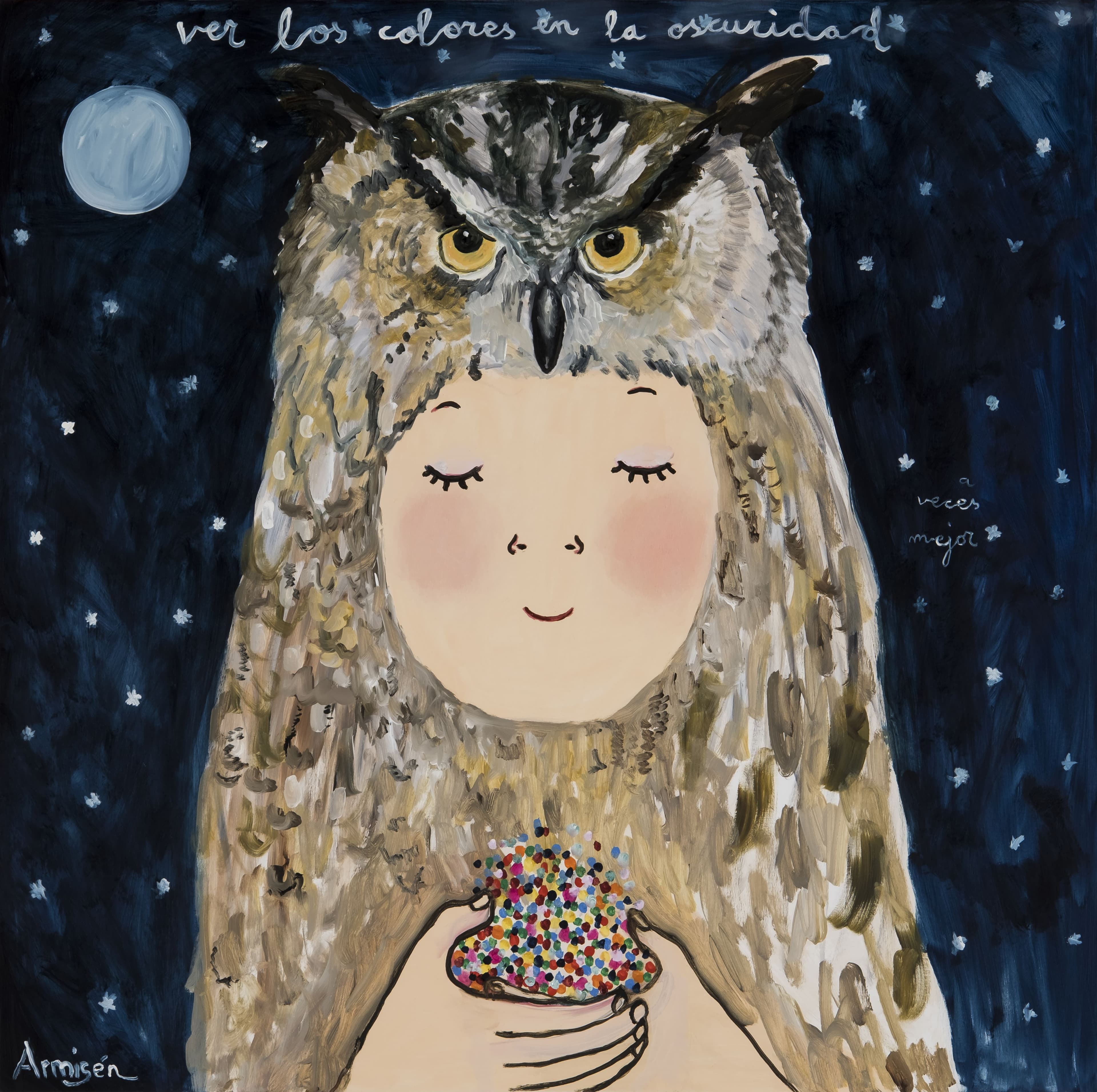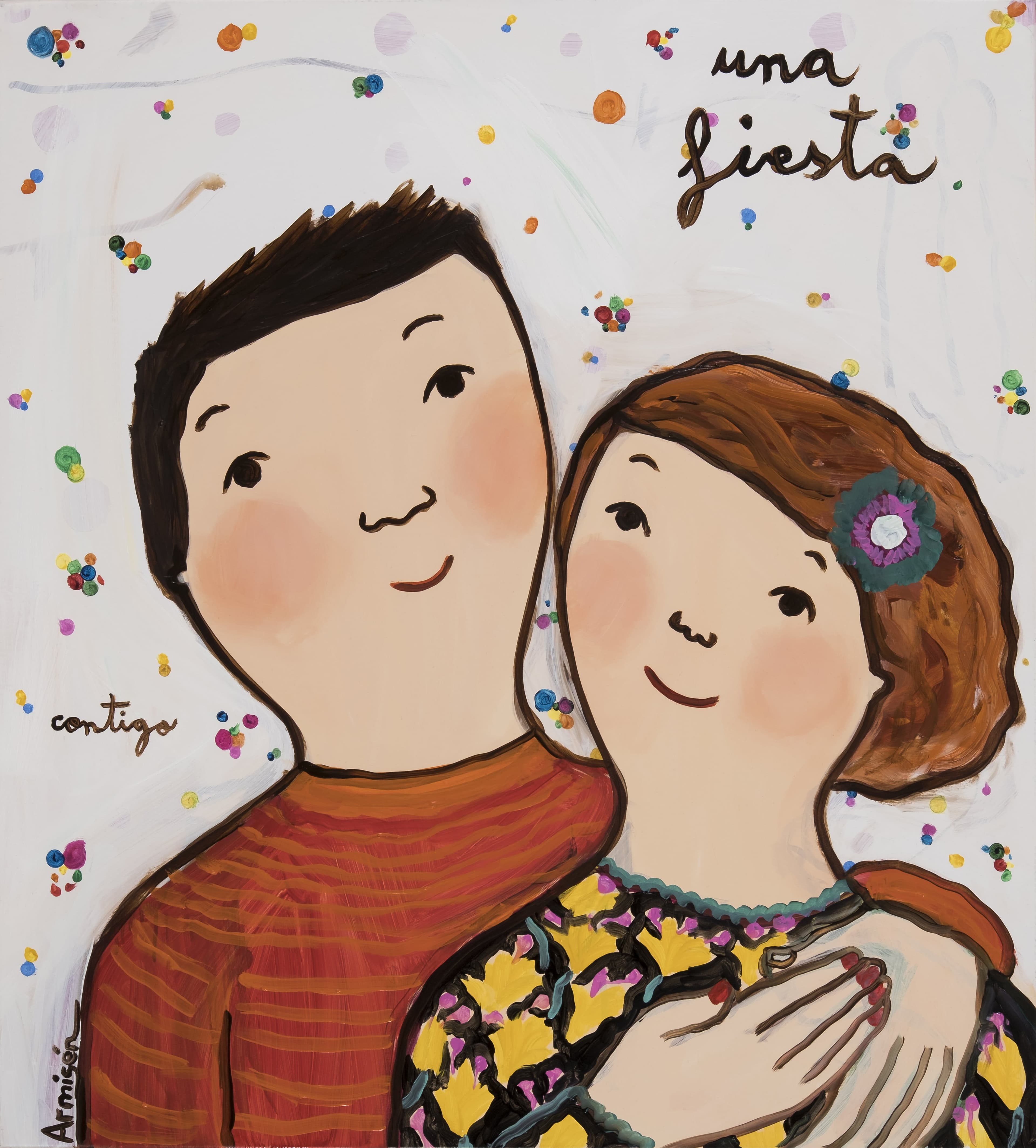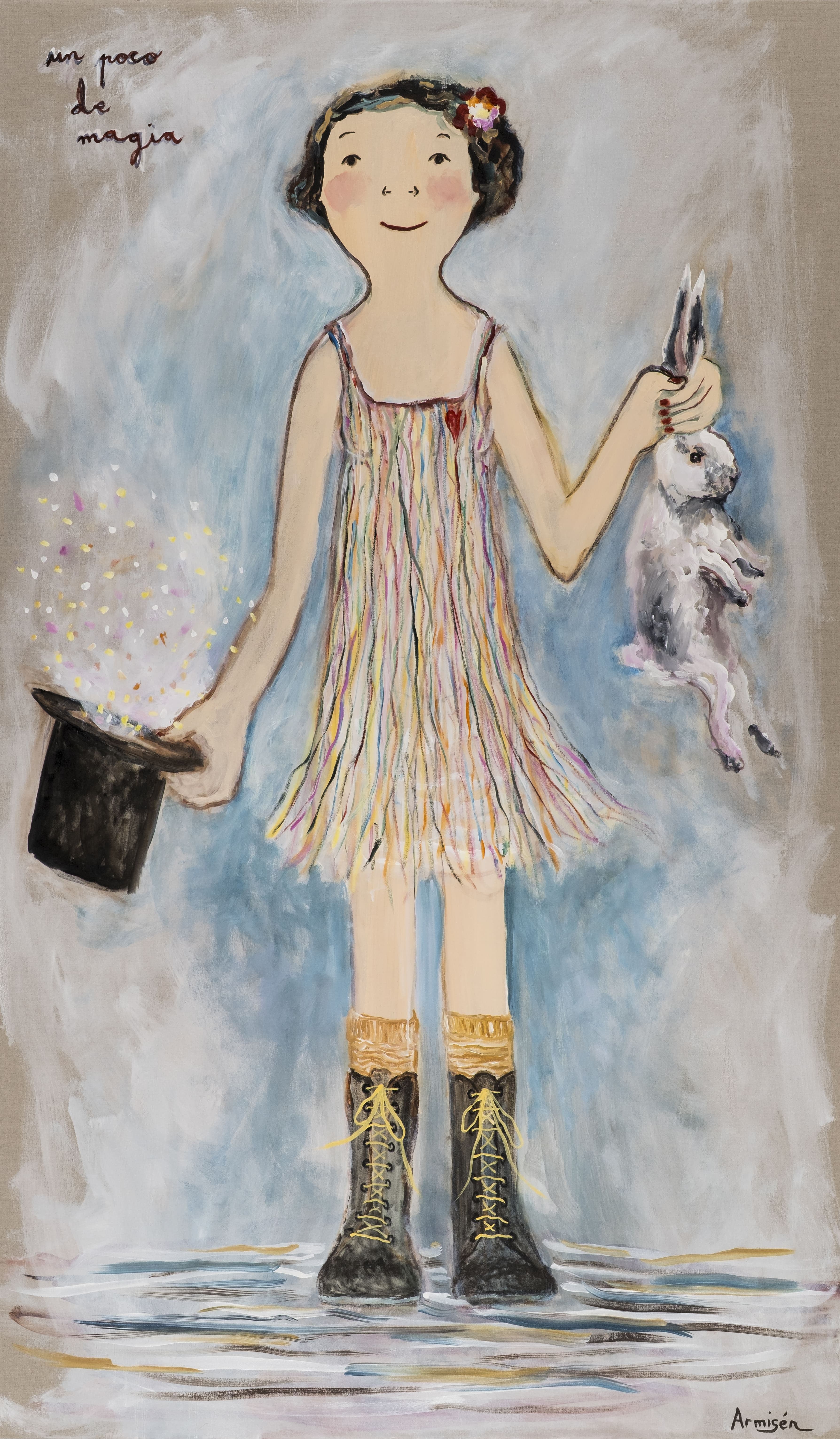 It has been said that Eva Armisén is the painter of happiness, sometimes she has seen this as a burden but not these days. Armisén sends a message of optimism, a party dedicated to painting, creativity, and reunion. The artist wants the viewer to go through their own emotions, thus closing the magic circle of creation. For Armisén painting brings joy even in moments of sadness; it shelters and protects her.